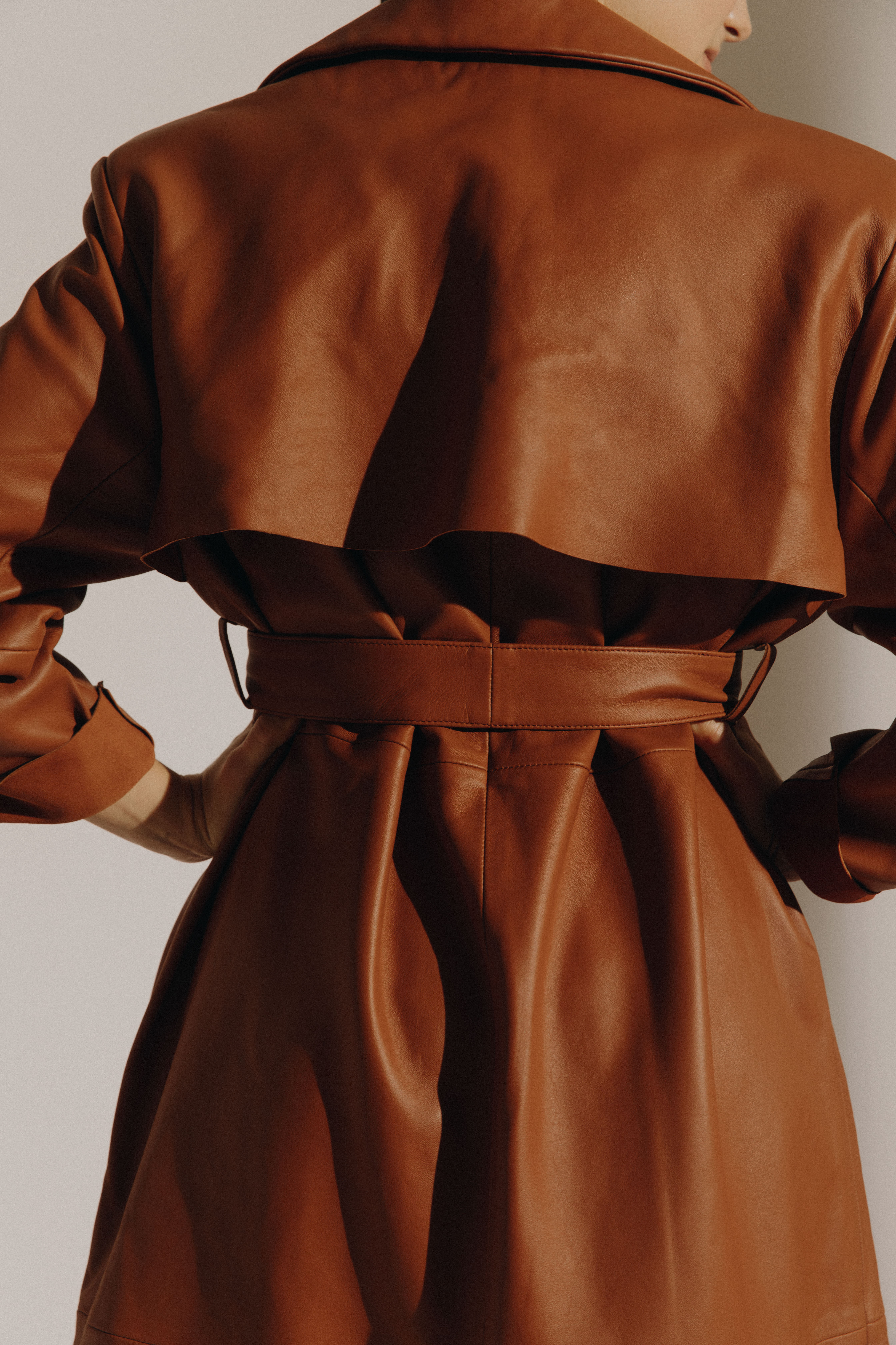 Oversized maxi trench-coat in leather