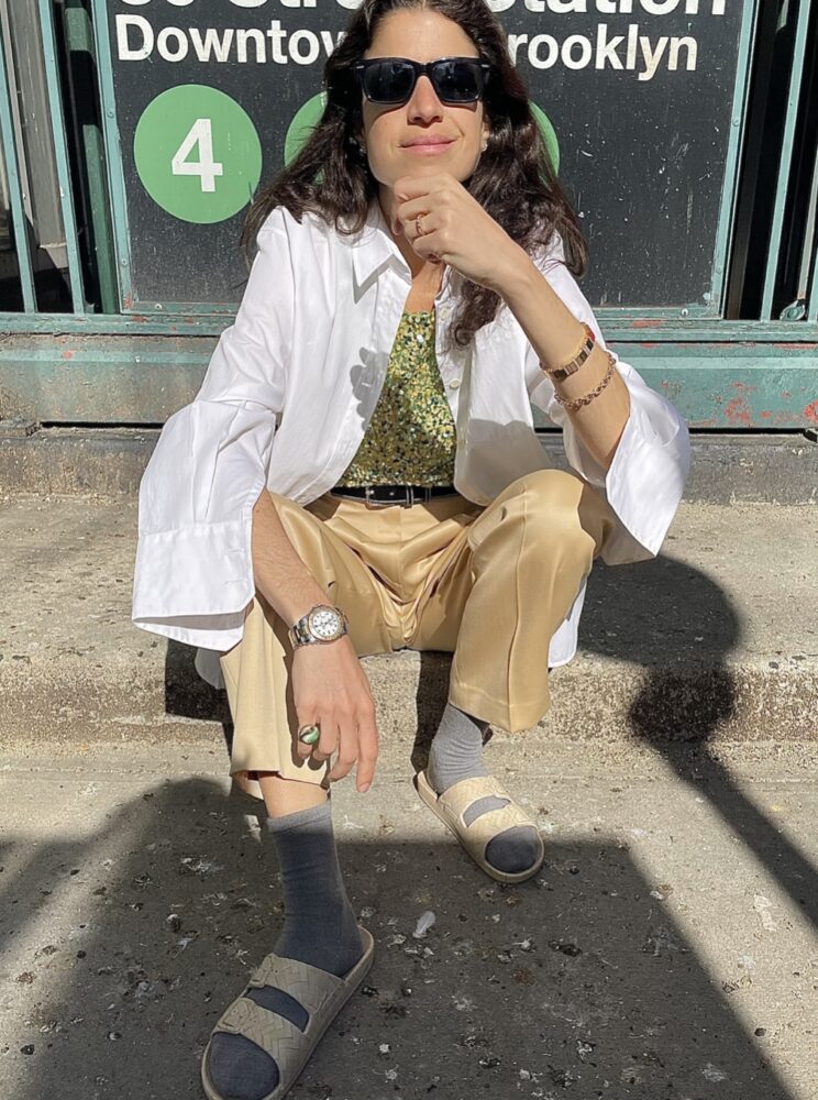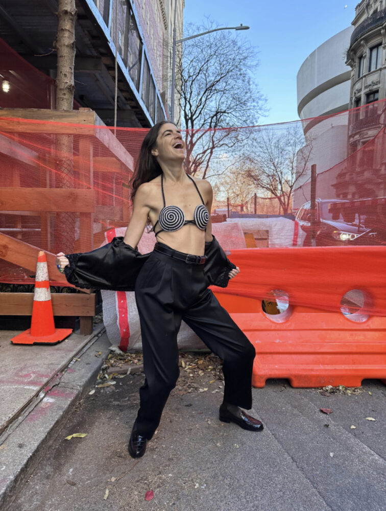Leandra : Je vis à New York avec mes filles jumelles et mon mari, j’ai beaucoup de plaisir à regarder les tulipes fleurir en hiver, j’aime beaucoup cuisiner et ma vision de la mode aujourd’hui est que nous vivons dans un monde post-tendance, qui fait place à une nouvelle ère de style personnel affirmé.