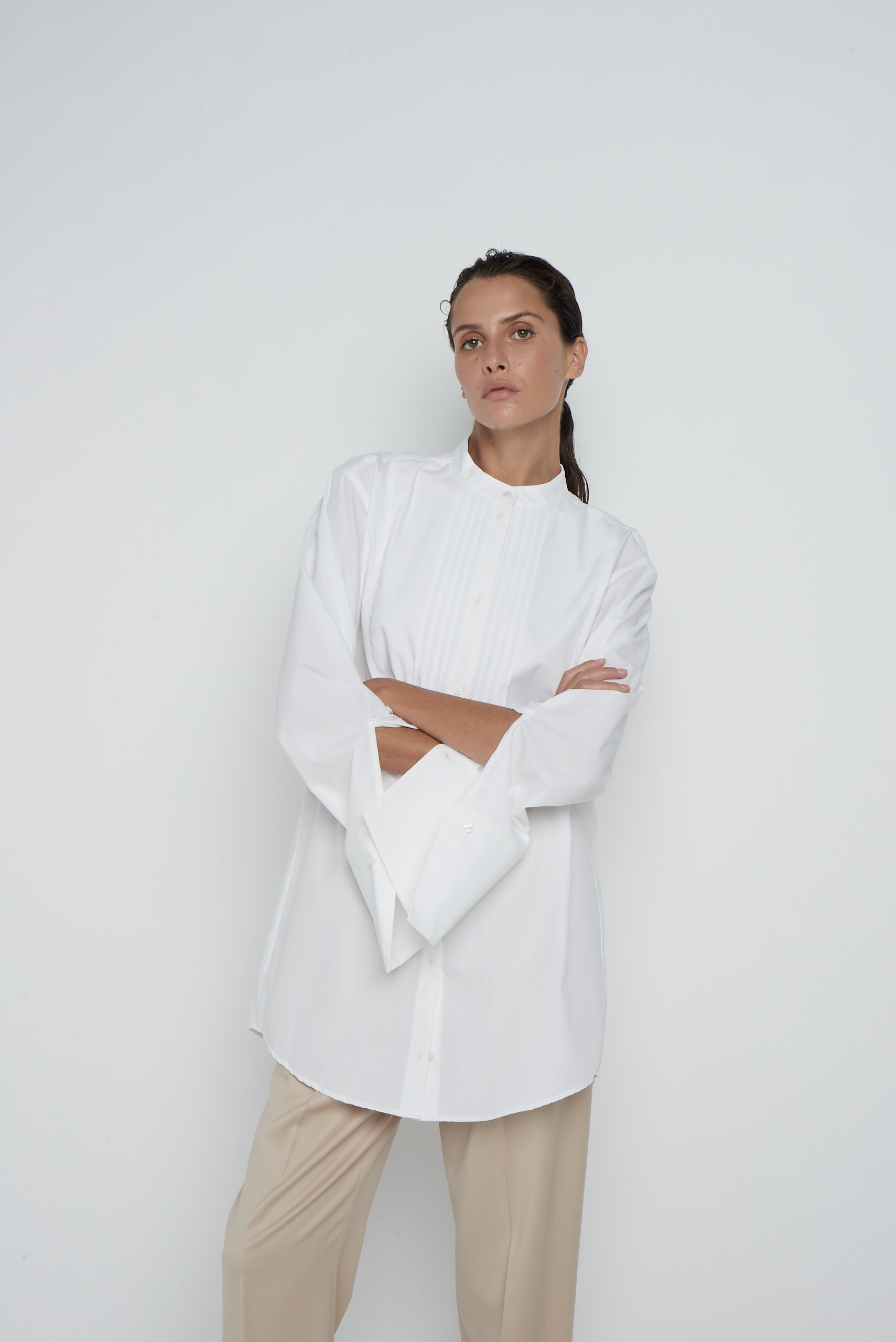 Chemise oversize en popeline de coton mélangé