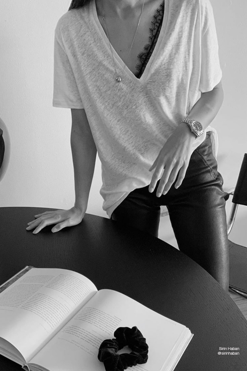 T-shirt en lin col V plongeant