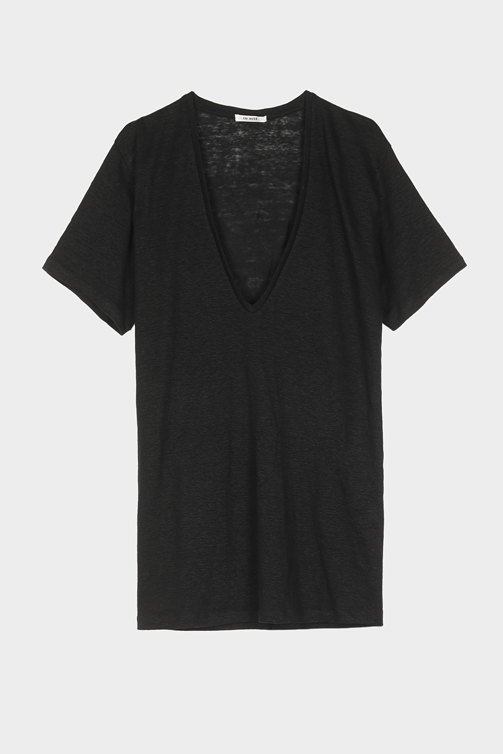 T-shirt en lin col V plongeant et manches courtes