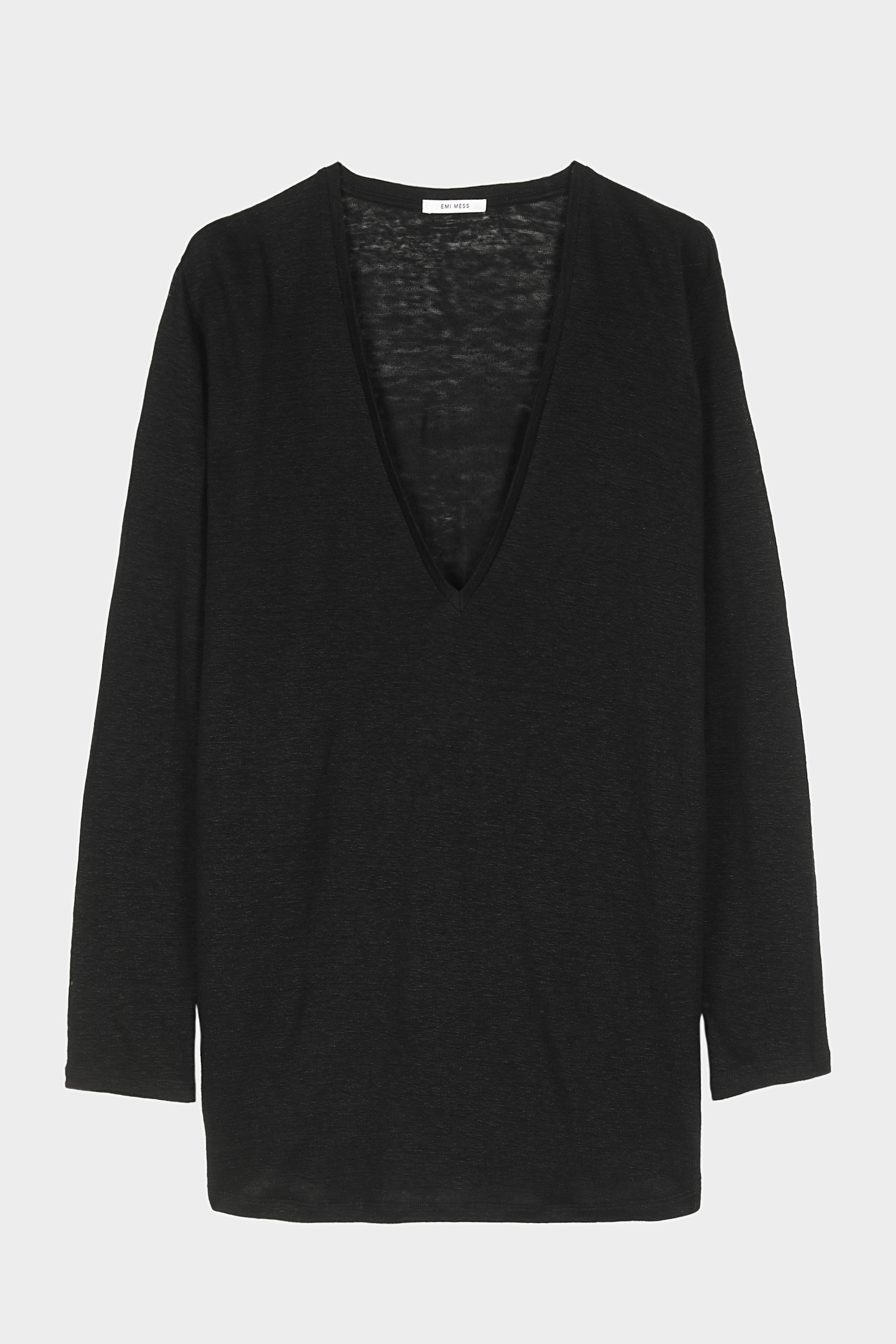 T-shirt en lin col V plongeant et manches longues